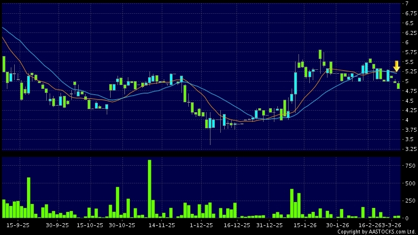 免責聲明:以上金融市場數據、報價、圖表 及/或各種技術分析指標乃根據公開資料分析和演釋自動生成的,僅作參考使用。此類自動生成的內容並不代表AASTOCKS.com Limited的立場。AASTOCKS.com Limited並不保證其準確性、完整性、實時性或者正確性。閣下應諮詢獨立專業意見,以核實定價資料或獲取更詳細的市場信息及須為所有跟隨此類自動生成的內容執行的交易或使用該內容負責。