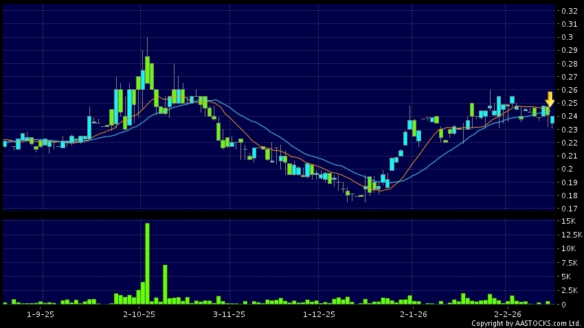 免責聲明:以上金融市場數據、報價、圖表 及/或各種技術分析指標乃根據公開資料分析和演釋自動生成的,僅作參考使用。此類自動生成的內容並不代表AASTOCKS.com Limited的立場。AASTOCKS.com Limited並不保證其準確性、完整性、實時性或者正確性。閣下應諮詢獨立專業意見,以核實定價資料或獲取更詳細的市場信息及須為所有跟隨此類自動生成的內容執行的交易或使用該內容負責。