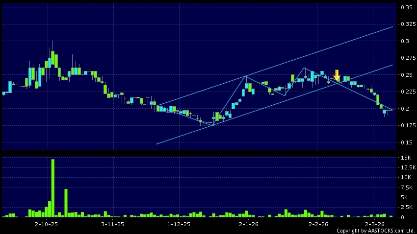 大人國際(01957.HK) 0.000 (0.000%) 呈現區域下軌突破。現價報0.198,無升跌,成交量0.00股,成交額0.00。