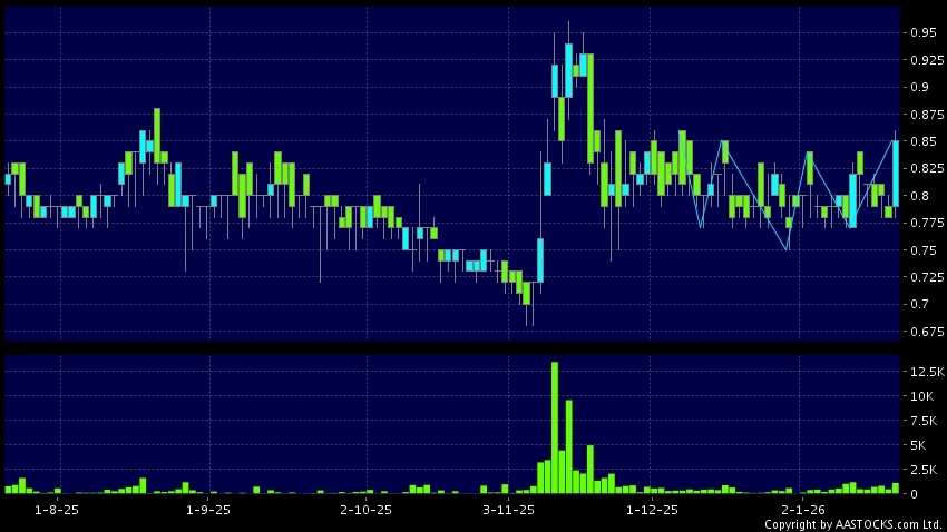 彩客新能源(01986.HK) -0.010 (-1.053%) 呈現三重底突破向上。現價報0.850,上升8.974%,成交量1.10百萬股,成交額90.70萬。