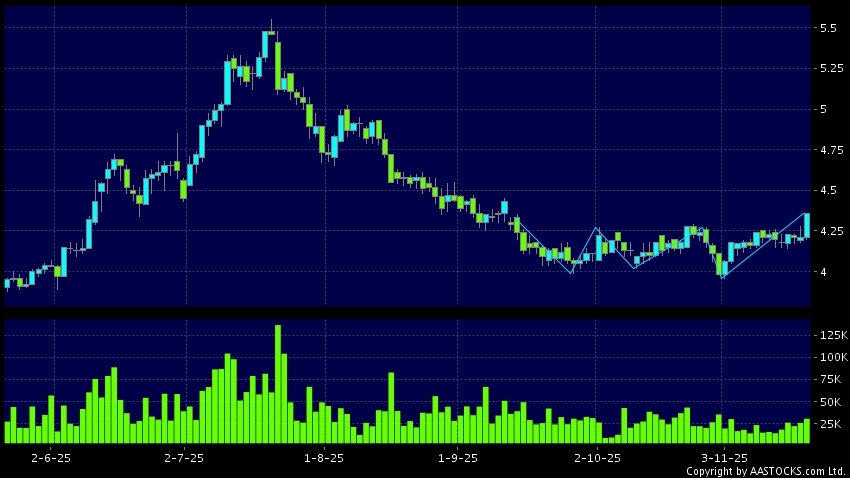 免責聲明:以上金融市場數據、報價、圖表 及/或各種技術分析指標乃根據公開資料分析和演釋自動生成的,僅作參考使用。此類自動生成的內容並不代表AASTOCKS.com Limited的立場。AASTOCKS.com Limited並不保證其準確性、完整性、實時性或者正確性。閣下應諮詢獨立專業意見,以核實定價資料或獲取更詳細的市場信息及須為所有跟隨此類自動生成的內容執行的交易或使用該內容負責。