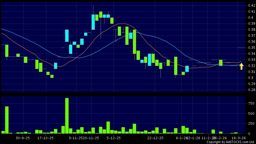 澳至尊(02031.HK) 0.000 (0.000%) 10天移動平均線升穿20天移動平均線,出現黃金交叉。現價報0.350,無升跌,成交量0.00股,成交額0.00。