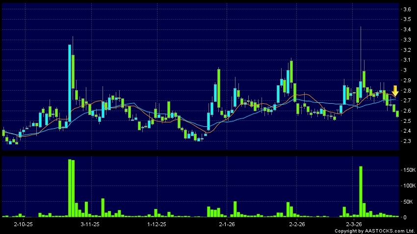 免責聲明:以上金融市場數據、報價、圖表 及/或各種技術分析指標乃根據公開資料分析和演釋自動生成的,僅作參考使用。此類自動生成的內容並不代表AASTOCKS.com Limited的立場。AASTOCKS.com Limited並不保證其準確性、完整性、實時性或者正確性。閣下應諮詢獨立專業意見,以核實定價資料或獲取更詳細的市場信息及須為所有跟隨此類自動生成的內容執行的交易或使用該內容負責。