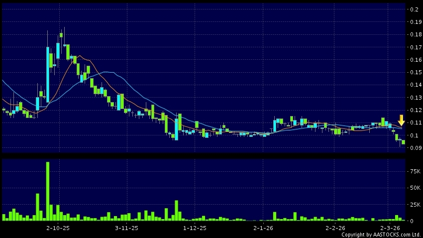 卓爾智聯(02098.HK) 0.000 (0.000%) 10天移動平均線跌穿20天移動平均線,出現死亡交叉。現價報0.093,下跌4.124%,成交量1.50百萬股,成交額14.14萬。