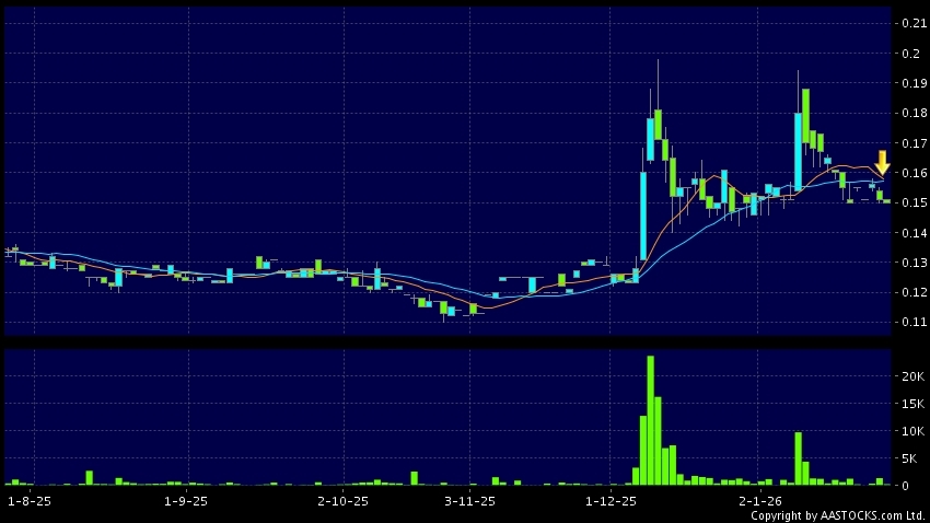 LEGION CONSO(02129.HK) +0.006 (+4.196%) 10天移動平均線跌穿20天移動平均線,出現死亡交叉。現價報0.150,下跌0.662%,成交量21.50萬股,成交額3.24萬。