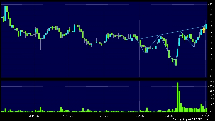 頭肩底是典型的利好訊號,當股價升穿阻力線時,升勢確認股價將持續上升,技術走勢向好。(港股報價延遲最少十五分鐘。沽空資料截至 2026-04-02 16:25。)