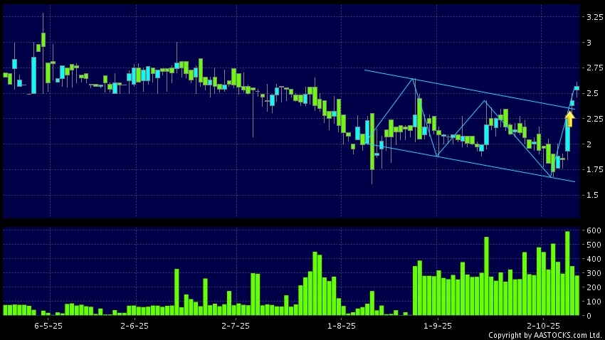 免責聲明:以上金融市場數據、報價、圖表 及/或各種技術分析指標乃根據公開資料分析和演釋自動生成的,僅作參考使用。此類自動生成的內容並不代表AASTOCKS.com Limited的立場。AASTOCKS.com Limited並不保證其準確性、完整性、實時性或者正確性。閣下應諮詢獨立專業意見,以核實定價資料或獲取更詳細的市場信息及須為所有跟隨此類自動生成的內容執行的交易或使用該內容負責。