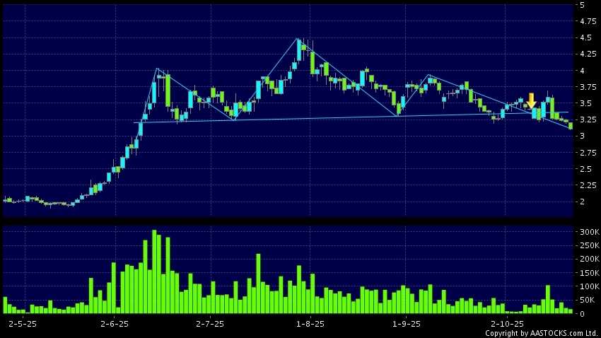 免責聲明:以上金融市場數據、報價、圖表 及/或各種技術分析指標乃根據公開資料分析和演釋自動生成的,僅作參考使用。此類自動生成的內容並不代表AASTOCKS.com Limited的立場。AASTOCKS.com Limited並不保證其準確性、完整性、實時性或者正確性。閣下應諮詢獨立專業意見,以核實定價資料或獲取更詳細的市場信息及須為所有跟隨此類自動生成的內容執行的交易或使用該內容負責。