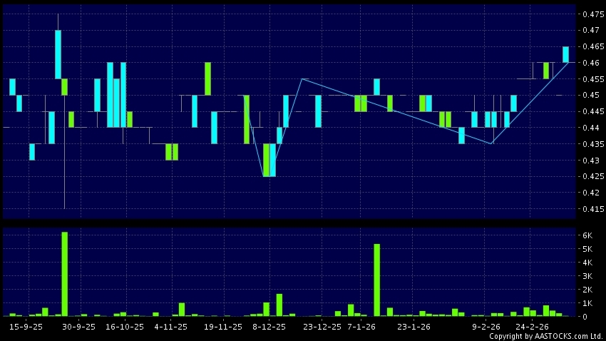 嘉濤(香港)控股(02189.HK) 0.000 (0.000%) 呈現杯柄形向上突破。現價報0.460,無升跌,成交量0.00股,成交額0.00。