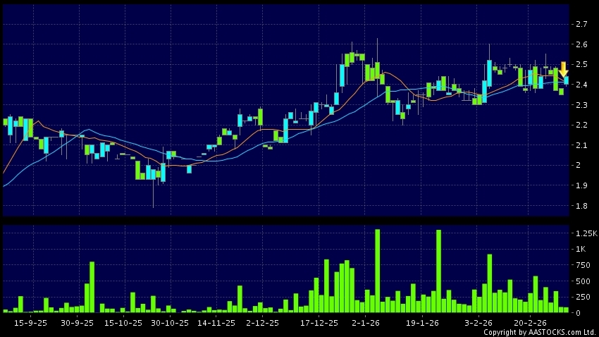 免責聲明:以上金融市場數據、報價、圖表 及/或各種技術分析指標乃根據公開資料分析和演釋自動生成的,僅作參考使用。此類自動生成的內容並不代表AASTOCKS.com Limited的立場。AASTOCKS.com Limited並不保證其準確性、完整性、實時性或者正確性。閣下應諮詢獨立專業意見,以核實定價資料或獲取更詳細的市場信息及須為所有跟隨此類自動生成的內容執行的交易或使用該內容負責。