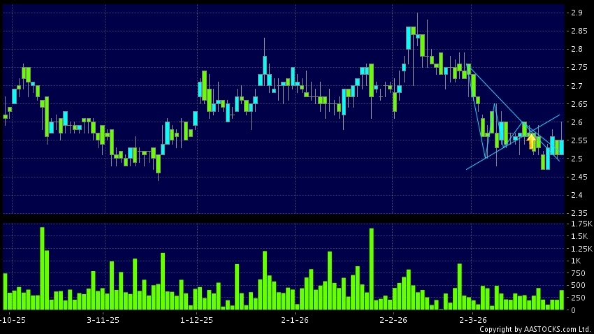 免責聲明:以上金融市場數據、報價、圖表 及/或各種技術分析指標乃根據公開資料分析和演釋自動生成的,僅作參考使用。此類自動生成的內容並不代表AASTOCKS.com Limited的立場。AASTOCKS.com Limited並不保證其準確性、完整性、實時性或者正確性。閣下應諮詢獨立專業意見,以核實定價資料或獲取更詳細的市場信息及須為所有跟隨此類自動生成的內容執行的交易或使用該內容負責。