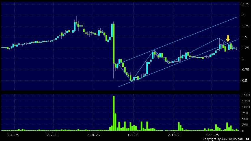 區域突破指股價在過去的一段時間只在一個範圍在內活動,然後股價下跌作出突破,跌穿區域的底部,技術走勢偏軟。(港股報價延遲最少十五分鐘。沽空資料截至 2025-12-12 16:25。)