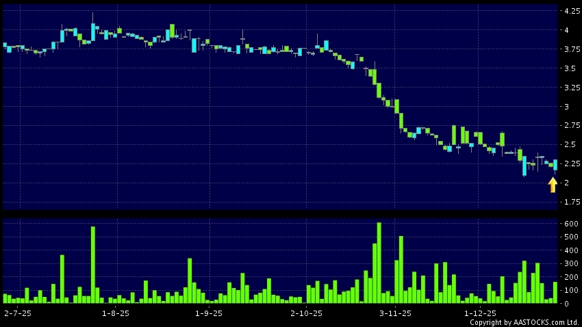 免責聲明:以上金融市場數據、報價、圖表 及/或各種技術分析指標乃根據公開資料分析和演釋自動生成的,僅作參考使用。此類自動生成的內容並不代表AASTOCKS.com Limited的立場。AASTOCKS.com Limited並不保證其準確性、完整性、實時性或者正確性。閣下應諮詢獨立專業意見,以核實定價資料或獲取更詳細的市場信息及須為所有跟隨此類自動生成的內容執行的交易或使用該內容負責。