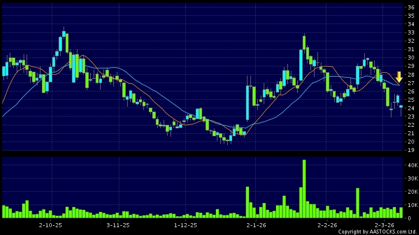 死亡交叉是一個利淡信號,指股價的短期移動平均線跌穿長期移動平均線,例如50天線跌穿250天線,在圖表上構成交叉的形狀。股價通常會下跌形成一個下降趨勢,技術走勢偏軟。(港股報價延遲最少十五分鐘。沽空資料截至 2026-03-16 16:25。)