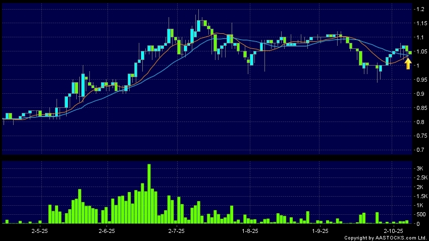 鴻承環保科技(02265.HK) +0.010 (+0.971%) 10天移動平均線升穿20天移動平均線,出現黃金交叉。現價報1.040,下跌0.952%,成交量1.50萬股,成交額1.57萬。