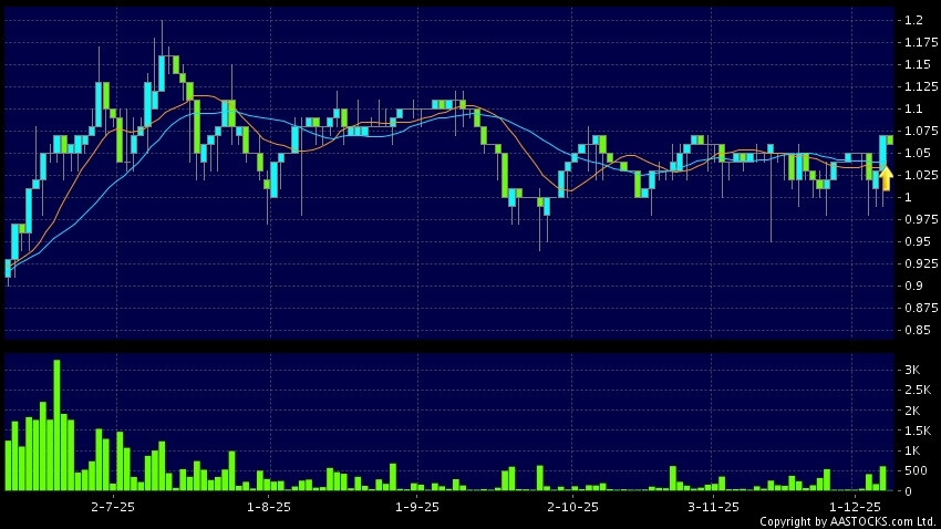 鴻承環保科技(02265.HK) 0.000 (0.000%) 10天移動平均線升穿20天移動平均線,出現黃金交叉。現價報1.060,下跌0.935%,成交量2.00萬股,成交額2.14萬。