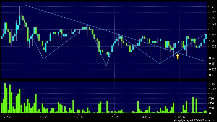 頭肩底是典型的利好訊號,當股價升穿阻力線時,升勢確認股價將持續上升,技術走勢向好。(港股報價延遲最少十五分鐘。)