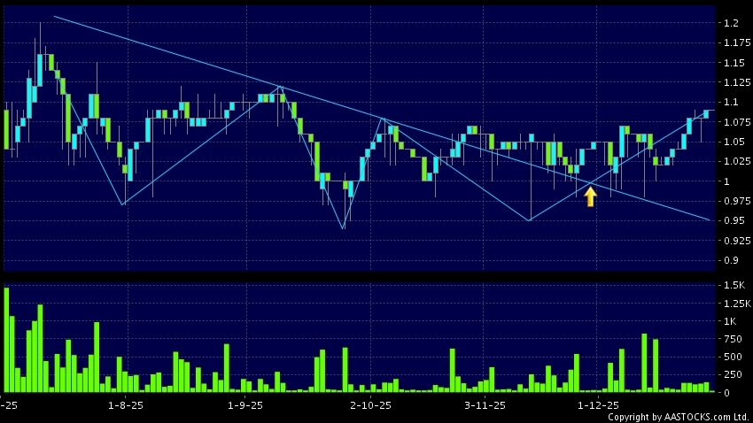 頭肩底是典型的利好訊號,當股價升穿阻力線時,升勢確認股價將持續上升,技術走勢向好。(港股報價延遲最少十五分鐘。)