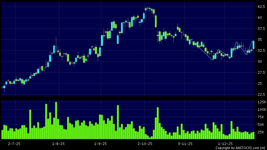 免責聲明:以上金融市場數據、報價、圖表 及/或各種技術分析指標乃根據公開資料分析和演釋自動生成的,僅作參考使用。此類自動生成的內容並不代表AASTOCKS.com Limited的立場。AASTOCKS.com Limited並不保證其準確性、完整性、實時性或者正確性。閣下應諮詢獨立專業意見,以核實定價資料或獲取更詳細的市場信息及須為所有跟隨此類自動生成的內容執行的交易或使用該內容負責。
