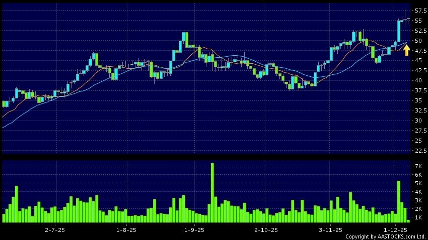 黃金交叉是一個利好訊號,指股價的短期移動平均線升穿長期移動平均線,例如50天線升穿250天線,在圖表上構成交叉的形狀。股價通常會上升形成一個上升趨勢,技術走勢向好。(港股報價延遲最少十五分鐘。沽空資料截至 2025-12-05 12:25。)