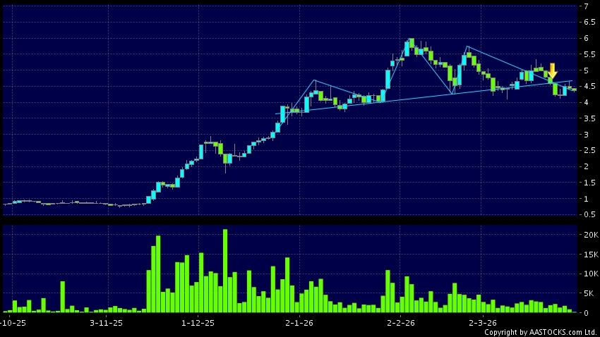 免責聲明:以上金融市場數據、報價、圖表 及/或各種技術分析指標乃根據公開資料分析和演釋自動生成的,僅作參考使用。此類自動生成的內容並不代表AASTOCKS.com Limited的立場。AASTOCKS.com Limited並不保證其準確性、完整性、實時性或者正確性。閣下應諮詢獨立專業意見,以核實定價資料或獲取更詳細的市場信息及須為所有跟隨此類自動生成的內容執行的交易或使用該內容負責。