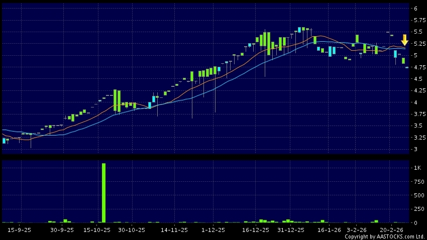 免責聲明:以上金融市場數據、報價、圖表 及/或各種技術分析指標乃根據公開資料分析和演釋自動生成的,僅作參考使用。此類自動生成的內容並不代表AASTOCKS.com Limited的立場。AASTOCKS.com Limited並不保證其準確性、完整性、實時性或者正確性。閣下應諮詢獨立專業意見,以核實定價資料或獲取更詳細的市場信息及須為所有跟隨此類自動生成的內容執行的交易或使用該內容負責。