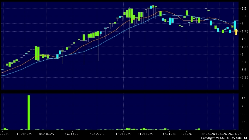 免責聲明:以上金融市場數據、報價、圖表 及/或各種技術分析指標乃根據公開資料分析和演釋自動生成的,僅作參考使用。此類自動生成的內容並不代表AASTOCKS.com Limited的立場。AASTOCKS.com Limited並不保證其準確性、完整性、實時性或者正確性。閣下應諮詢獨立專業意見,以核實定價資料或獲取更詳細的市場信息及須為所有跟隨此類自動生成的內容執行的交易或使用該內容負責。