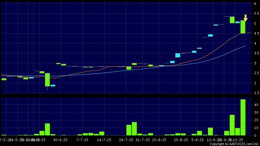 免責聲明:以上金融市場數據、報價、圖表 及/或各種技術分析指標乃根據公開資料分析和演釋自動生成的,僅作參考使用。此類自動生成的內容並不代表AASTOCKS.com Limited的立場。AASTOCKS.com Limited並不保證其準確性、完整性、實時性或者正確性。閣下應諮詢獨立專業意見,以核實定價資料或獲取更詳細的市場信息及須為所有跟隨此類自動生成的內容執行的交易或使用該內容負責。