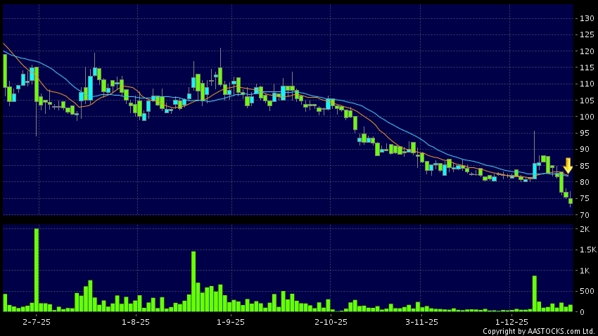 死亡交叉是一個利淡信號,指股價的短期移動平均線跌穿長期移動平均線,例如50天線跌穿250天線,在圖表上構成交叉的形狀。股價通常會下跌形成一個下降趨勢,技術走勢偏軟。(港股報價延遲最少十五分鐘。)