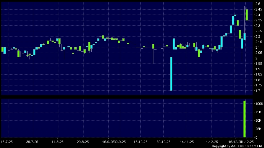 免責聲明:以上金融市場數據、報價、圖表 及/或各種技術分析指標乃根據公開資料分析和演釋自動生成的,僅作參考使用。此類自動生成的內容並不代表AASTOCKS.com Limited的立場。AASTOCKS.com Limited並不保證其準確性、完整性、實時性或者正確性。閣下應諮詢獨立專業意見,以核實定價資料或獲取更詳細的市場信息及須為所有跟隨此類自動生成的內容執行的交易或使用該內容負責。