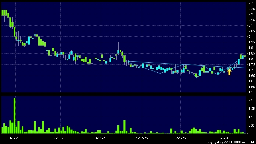 免責聲明:以上金融市場數據、報價、圖表 及/或各種技術分析指標乃根據公開資料分析和演釋自動生成的,僅作參考使用。此類自動生成的內容並不代表AASTOCKS.com Limited的立場。AASTOCKS.com Limited並不保證其準確性、完整性、實時性或者正確性。閣下應諮詢獨立專業意見,以核實定價資料或獲取更詳細的市場信息及須為所有跟隨此類自動生成的內容執行的交易或使用該內容負責。
