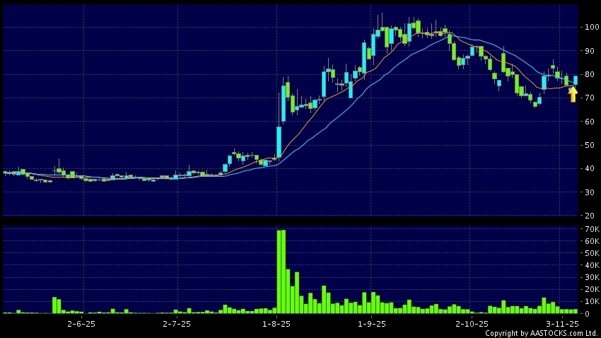 英諾賽科(02577.HK) -3.100 (-3.944%) 沽空 $1.71百萬; 比率 0.687% 10天移動平均線升穿20天移動平均線,出現黃金交叉。現價報78.900,上升6.334%,成交量3.89百萬股,成交額2.99億。