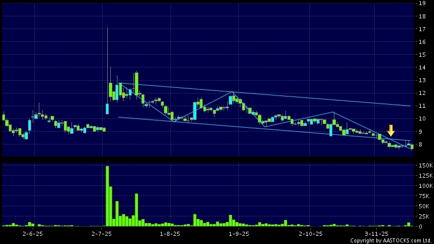 區域突破指股價在過去的一段時間只在一個範圍在內活動,然後股價下跌作出突破,跌穿區域的底部,技術走勢偏軟。(港股報價延遲最少十五分鐘。)