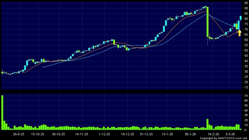 黃金交叉是一個利好訊號,指股價的短期移動平均線升穿長期移動平均線,例如50天線升穿250天線,在圖表上構成交叉的形狀。股價通常會上升形成一個上升趨勢,技術走勢向好。(港股報價延遲最少十五分鐘。沽空資料截至 2026-03-18 12:25。)