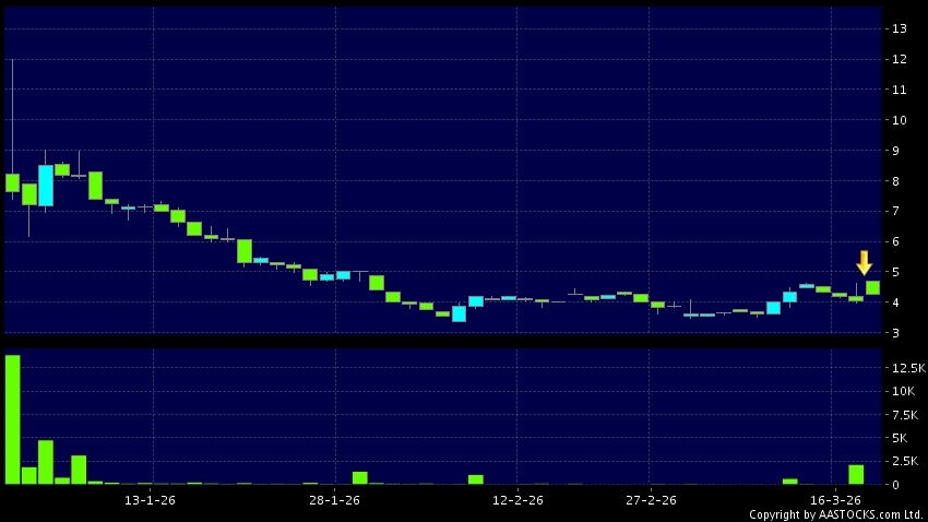 免責聲明:以上金融市場數據、報價、圖表 及/或各種技術分析指標乃根據公開資料分析和演釋自動生成的,僅作參考使用。此類自動生成的內容並不代表AASTOCKS.com Limited的立場。AASTOCKS.com Limited並不保證其準確性、完整性、實時性或者正確性。閣下應諮詢獨立專業意見,以核實定價資料或獲取更詳細的市場信息及須為所有跟隨此類自動生成的內容執行的交易或使用該內容負責。