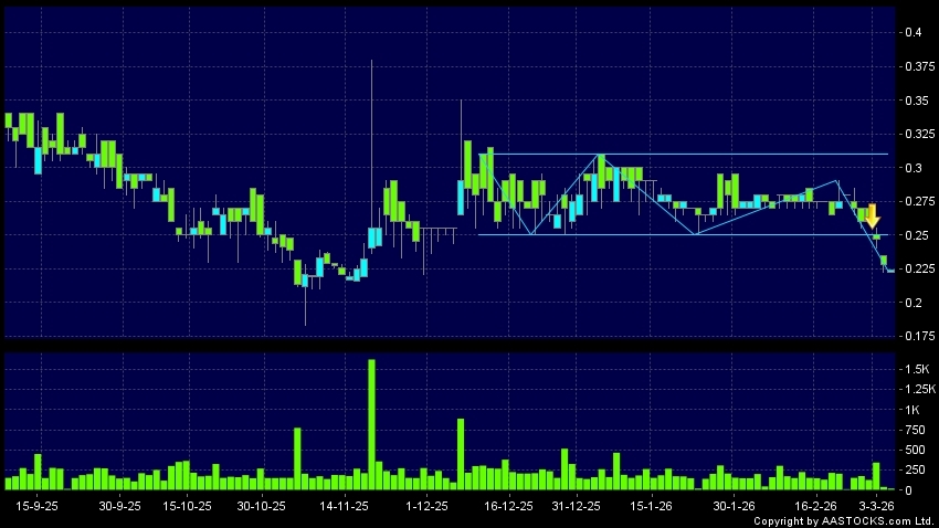 免責聲明:以上金融市場數據、報價、圖表 及/或各種技術分析指標乃根據公開資料分析和演釋自動生成的,僅作參考使用。此類自動生成的內容並不代表AASTOCKS.com Limited的立場。AASTOCKS.com Limited並不保證其準確性、完整性、實時性或者正確性。閣下應諮詢獨立專業意見,以核實定價資料或獲取更詳細的市場信息及須為所有跟隨此類自動生成的內容執行的交易或使用該內容負責。
