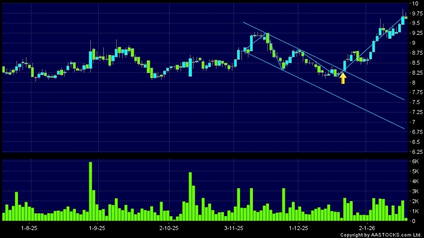 區域突破指股價在過去的一段時間只在一個範圍在內活動,然後股價上升作出突破,升穿區域的頂部,技術走勢向好。(港股報價延遲最少十五分鐘。沽空資料截至 2026-02-13 16:25。)