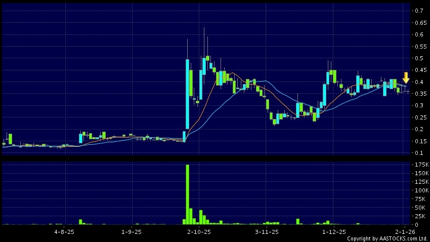 精技集團(03302.HK) +0.005 (+1.493%) 10天移動平均線跌穿20天移動平均線,出現死亡交叉。現價報0.360,無升跌,成交量31.40萬股,成交額11.09萬。
