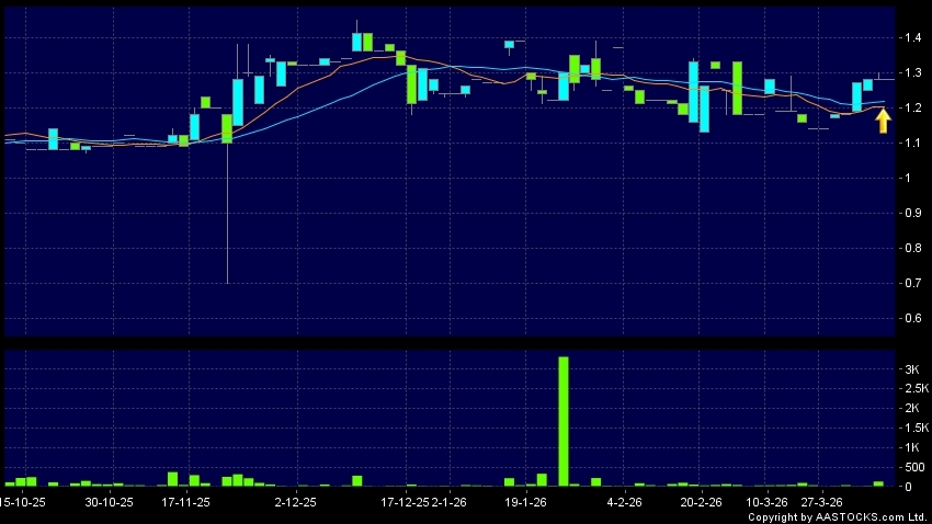 中國鵬飛集團(03348.HK) 0.000 (0.000%) 10天移動平均線升穿20天移動平均線,出現黃金交叉。現價報1.280,無升跌,成交量0.00股,成交額0.00。