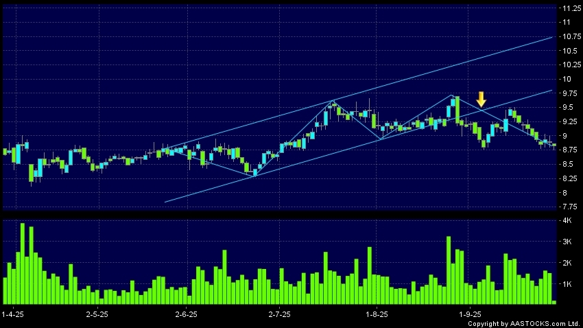 區域突破指股價在過去的一段時間只在一個範圍在內活動,然後股價下跌作出突破,跌穿區域的底部,技術走勢偏軟。(港股報價延遲最少十五分鐘。沽空資料截至 2025-10-09 16:25。)
