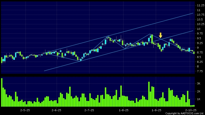 區域突破指股價在過去的一段時間只在一個範圍在內活動,然後股價下跌作出突破,跌穿區域的底部,技術走勢偏軟。(港股報價延遲最少十五分鐘。沽空資料截至 2025-10-09 16:25。)