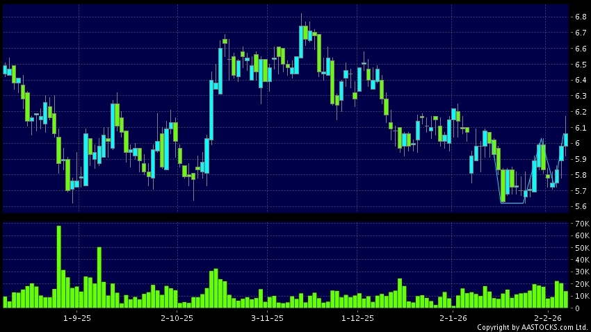 杯柄形突破是一個向好的技術形態,將利好股價走勢。(港股報價延遲最少十五分鐘。沽空資料截至 2026-02-06 16:25。)