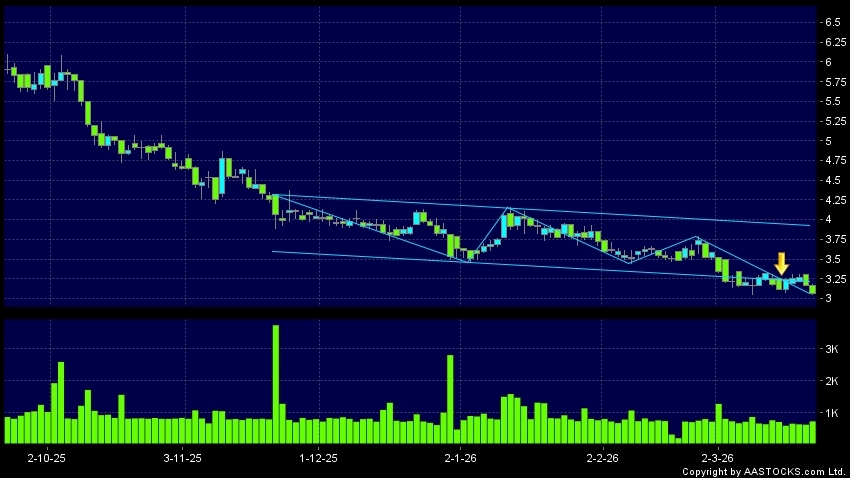 區域突破指股價在過去的一段時間只在一個範圍在內活動,然後股價下跌作出突破,跌穿區域的底部,技術走勢偏軟。(港股報價延遲最少十五分鐘。)