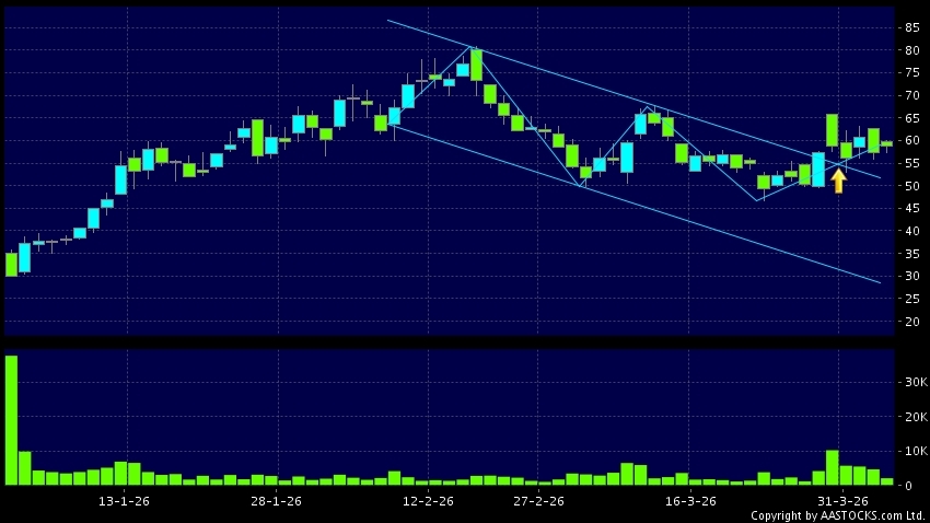 區域突破指股價在過去的一段時間只在一個範圍在內活動,然後股價上升作出突破,升穿區域的頂部,技術走勢向好。(港股報價延遲最少十五分鐘。沽空資料截至 2026-04-13 16:25。)