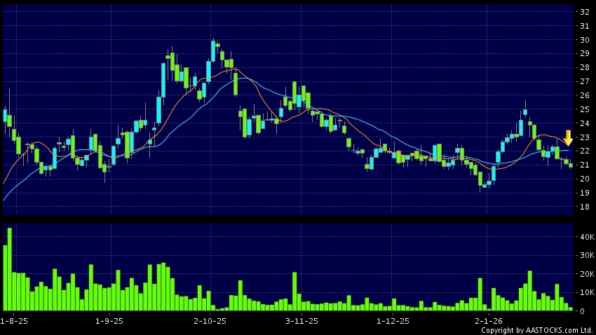死亡交叉是一個利淡信號,指股價的短期移動平均線跌穿長期移動平均線,例如50天線跌穿250天線,在圖表上構成交叉的形狀。股價通常會下跌形成一個下降趨勢,技術走勢偏軟。(港股報價延遲最少十五分鐘。沽空資料截至 2026-02-20 16:25。)