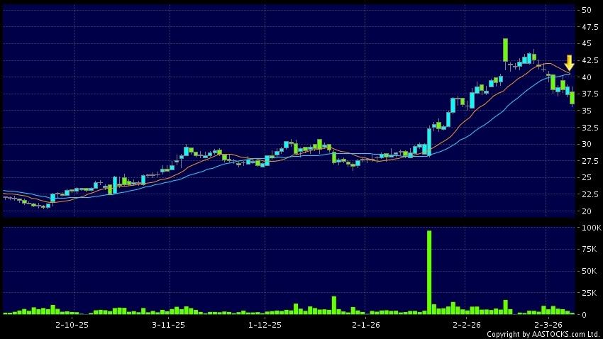 中國重汽(03808.HK) +2.260 (+6.082%) 沽空 $4.88千萬; 比率 16.704% 10天移動平均線跌穿20天移動平均線,出現死亡交叉。現價報35.900,下跌6.850%,成交量2.02百萬股,成交額7.30千萬。