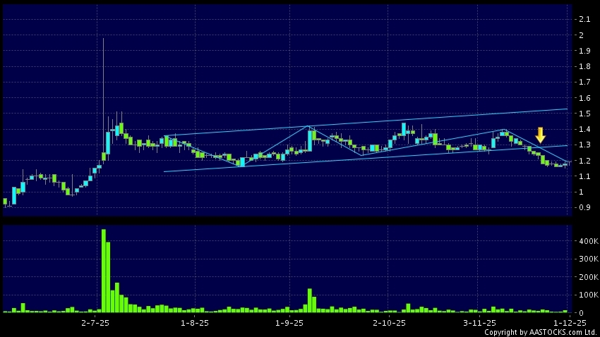 區域突破指股價在過去的一段時間只在一個範圍在內活動,然後股價下跌作出突破,跌穿區域的底部,技術走勢偏軟。(港股報價延遲最少十五分鐘。沽空資料截至 2025-12-02 16:25。)