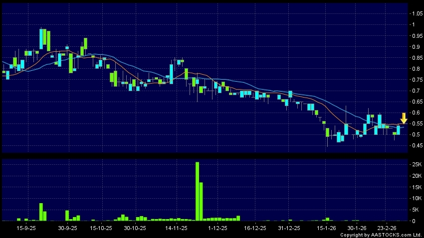免責聲明:以上金融市場數據、報價、圖表 及/或各種技術分析指標乃根據公開資料分析和演釋自動生成的,僅作參考使用。此類自動生成的內容並不代表AASTOCKS.com Limited的立場。AASTOCKS.com Limited並不保證其準確性、完整性、實時性或者正確性。閣下應諮詢獨立專業意見,以核實定價資料或獲取更詳細的市場信息及須為所有跟隨此類自動生成的內容執行的交易或使用該內容負責。