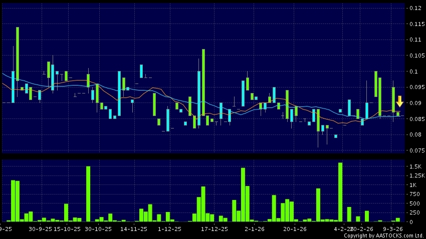大成玉米集團(03889.HK) 0.000 (0.000%) 10天移動平均線跌穿20天移動平均線,出現死亡交叉。現價報0.086,無升跌,成交量0.00股,成交額0.00。