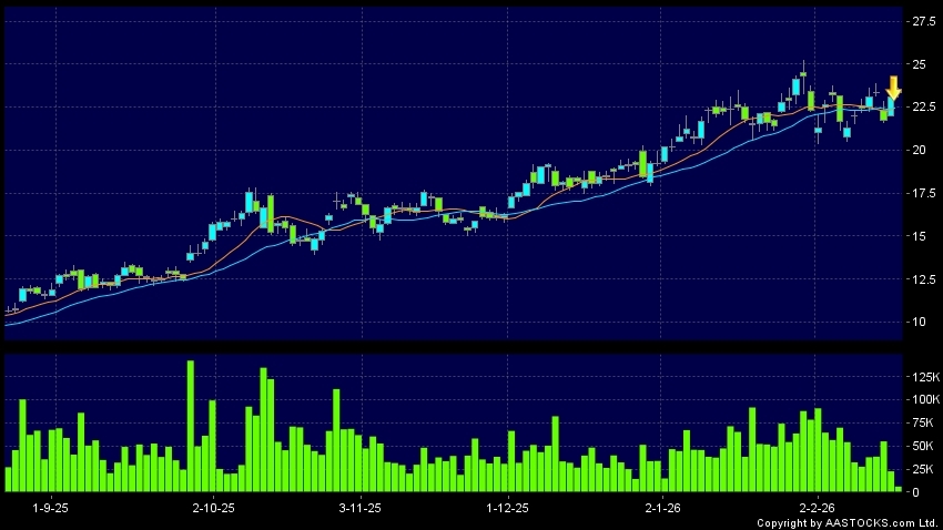 免責聲明:以上金融市場數據、報價、圖表 及/或各種技術分析指標乃根據公開資料分析和演釋自動生成的,僅作參考使用。此類自動生成的內容並不代表AASTOCKS.com Limited的立場。AASTOCKS.com Limited並不保證其準確性、完整性、實時性或者正確性。閣下應諮詢獨立專業意見,以核實定價資料或獲取更詳細的市場信息及須為所有跟隨此類自動生成的內容執行的交易或使用該內容負責。